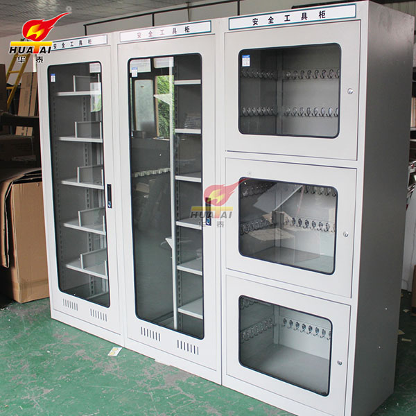 電力工具柜在國(guó)內(nèi)電力行業(yè)中,廣泛使用絕緣工具進(jìn)行帶電作業(yè)或操作。受潮后的絕緣工具絕緣性能下降,嚴(yán)格危及檢修人員的生命安全。現(xiàn)有的措施是采用木 質(zhì)或鐵質(zhì)的柜體或絕緣工具庫(kù)存房進(jìn)行絕緣工具的存放或保管。木質(zhì)、鐵質(zhì)工具柜都不具備長(zhǎng)期恒定的防潮作用,極易受潮,但這種庫(kù)房投資大,能耗高,干燥過程 緩慢,特別是絕緣工具少的單位,也沒有必要建立絕緣工具庫(kù)房。
