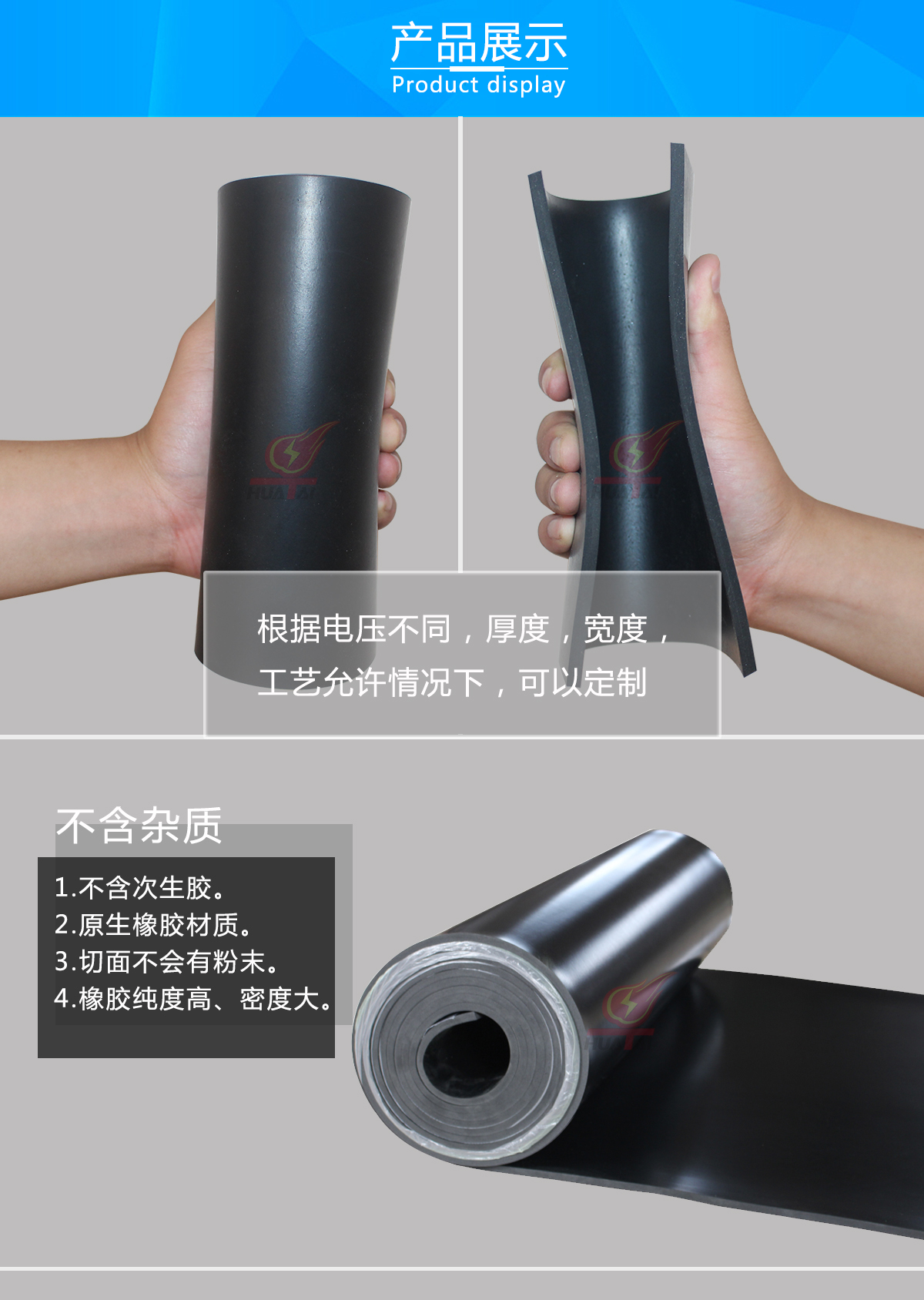 (3)絕緣地膠墊表面光滑,外表光澤度好,彈性強(qiáng),絕緣性優(yōu)越,而且質(zhì)量穩(wěn)定。