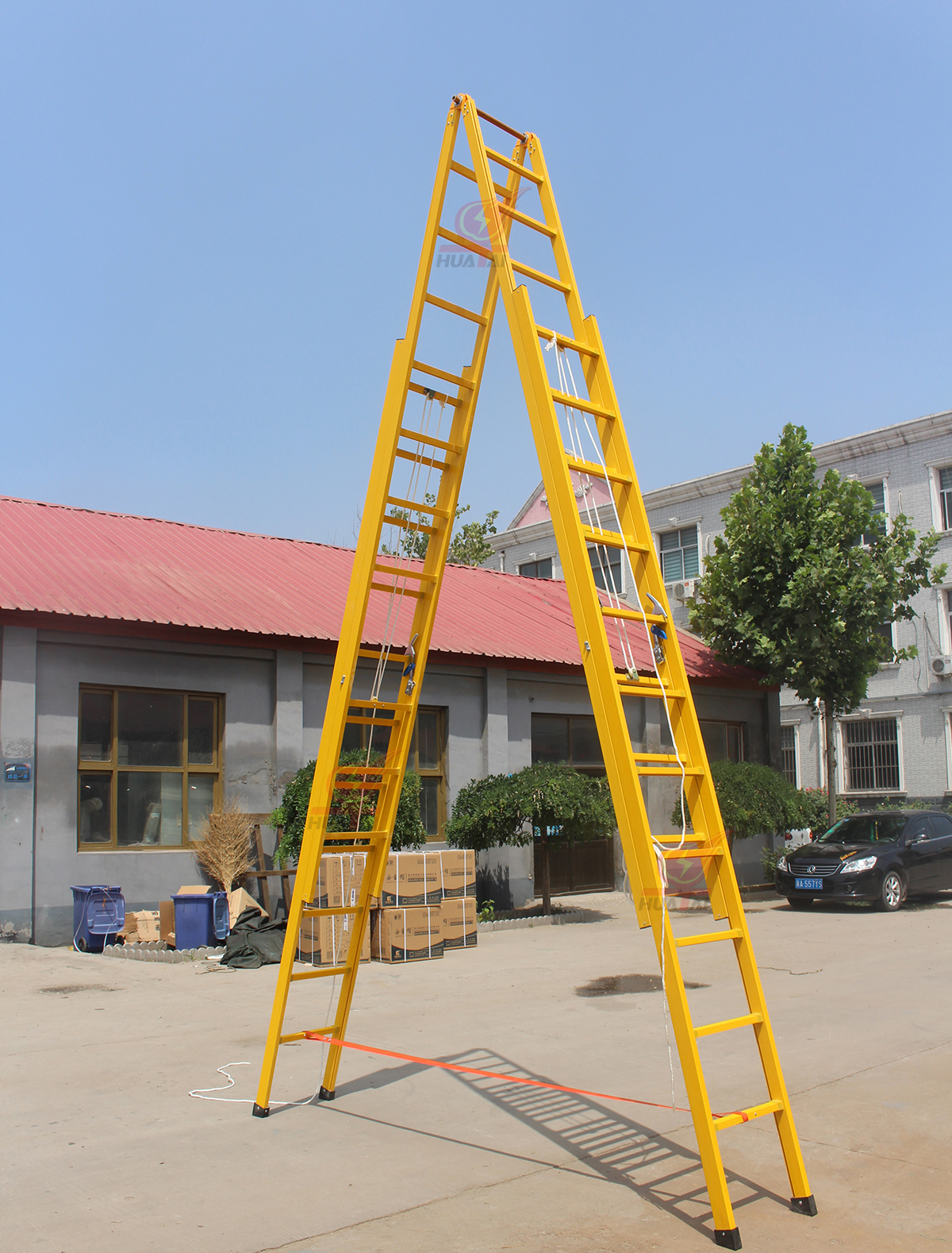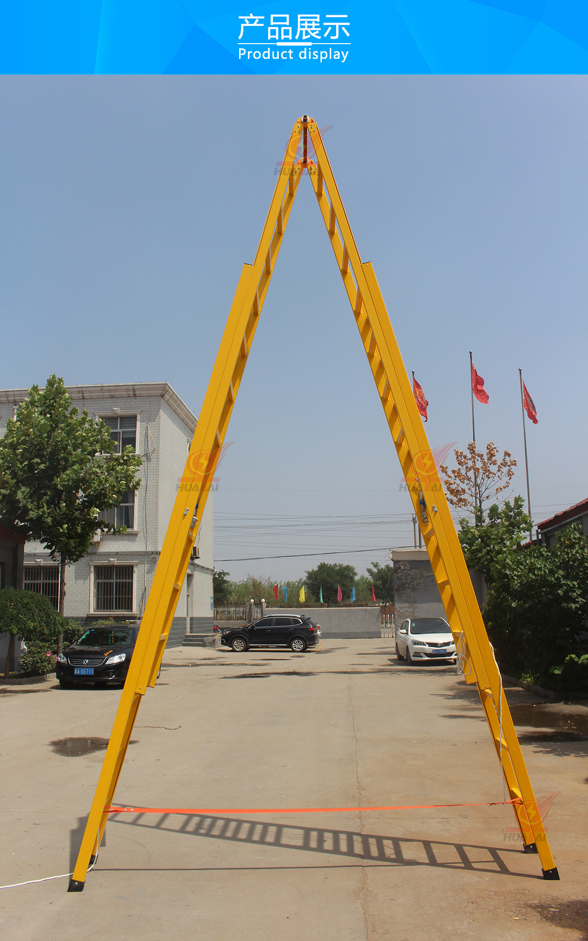 4、如果梯子使用高度超過(guò)5米,請(qǐng)務(wù)必在梯子中上部設(shè)立F8以上拉線。