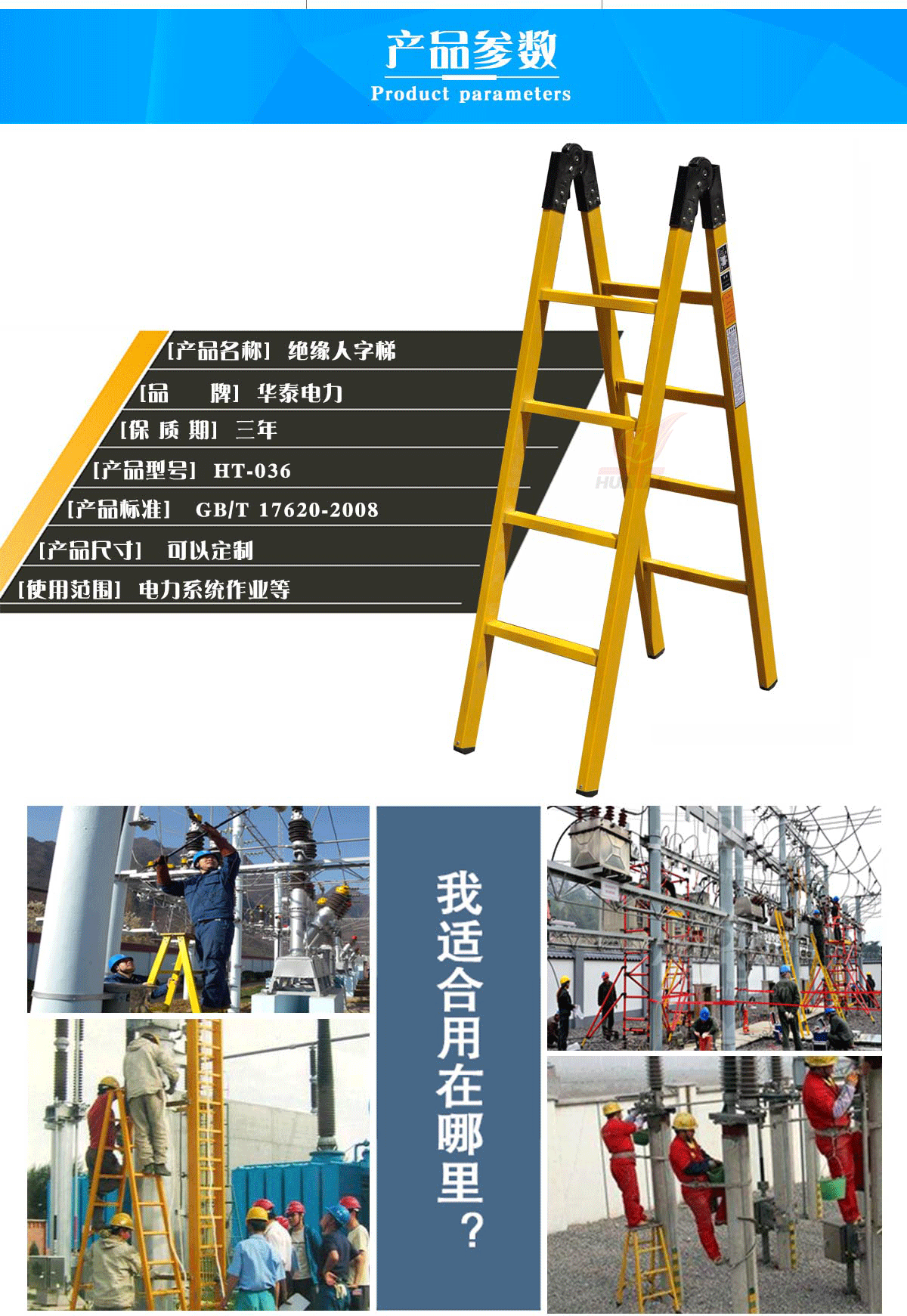 用了絕緣漆進(jìn)行處理。梯撐、梯腳防滑設(shè)計(jì)不易疲勞,梯各部件外形無尖銳棱角,安全程度高,絕緣性能強(qiáng);吸水力低,耐腐蝕。