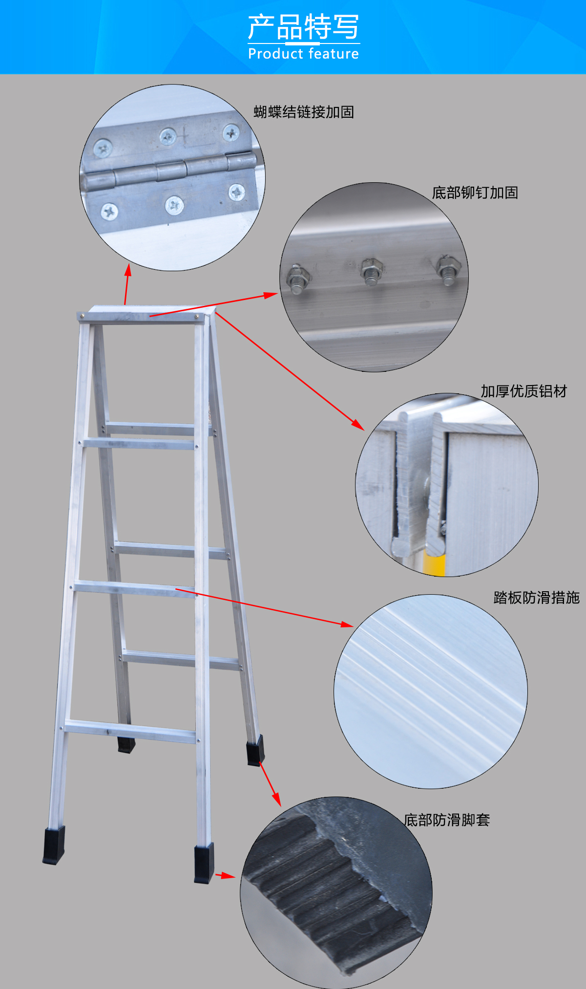 3、攀登鋁合金人字梯子時必須穿平底鞋,以免打滑發(fā)生意外。