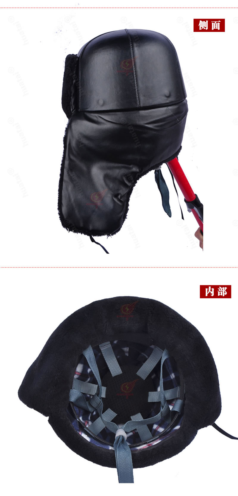 ?。?)外置玻璃鋼、ABS防寒安全帽:是革帽面、內(nèi)殼、保溫層與內(nèi)襯組成。其外殼采用玻璃鋼材料制成,外表層使用由皮或革帽面、毛紅絨或羊剪絨等組成。