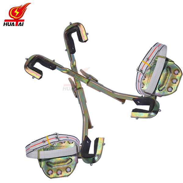 3、正式攀登前應(yīng)對腳扣作人體沖擊試登,判斷腳扣是否有變形和損傷。登桿前應(yīng)將腳扣登板的皮帶系牢,登桿過程中應(yīng)根據(jù)桿粗細(xì)隨時調(diào)整腳扣尺寸。