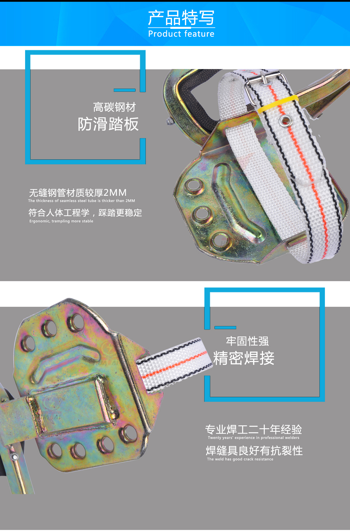 防滑腳墊:有效的增強摩擦力度,從而達(dá)到安全固定,使作業(yè)更加安全