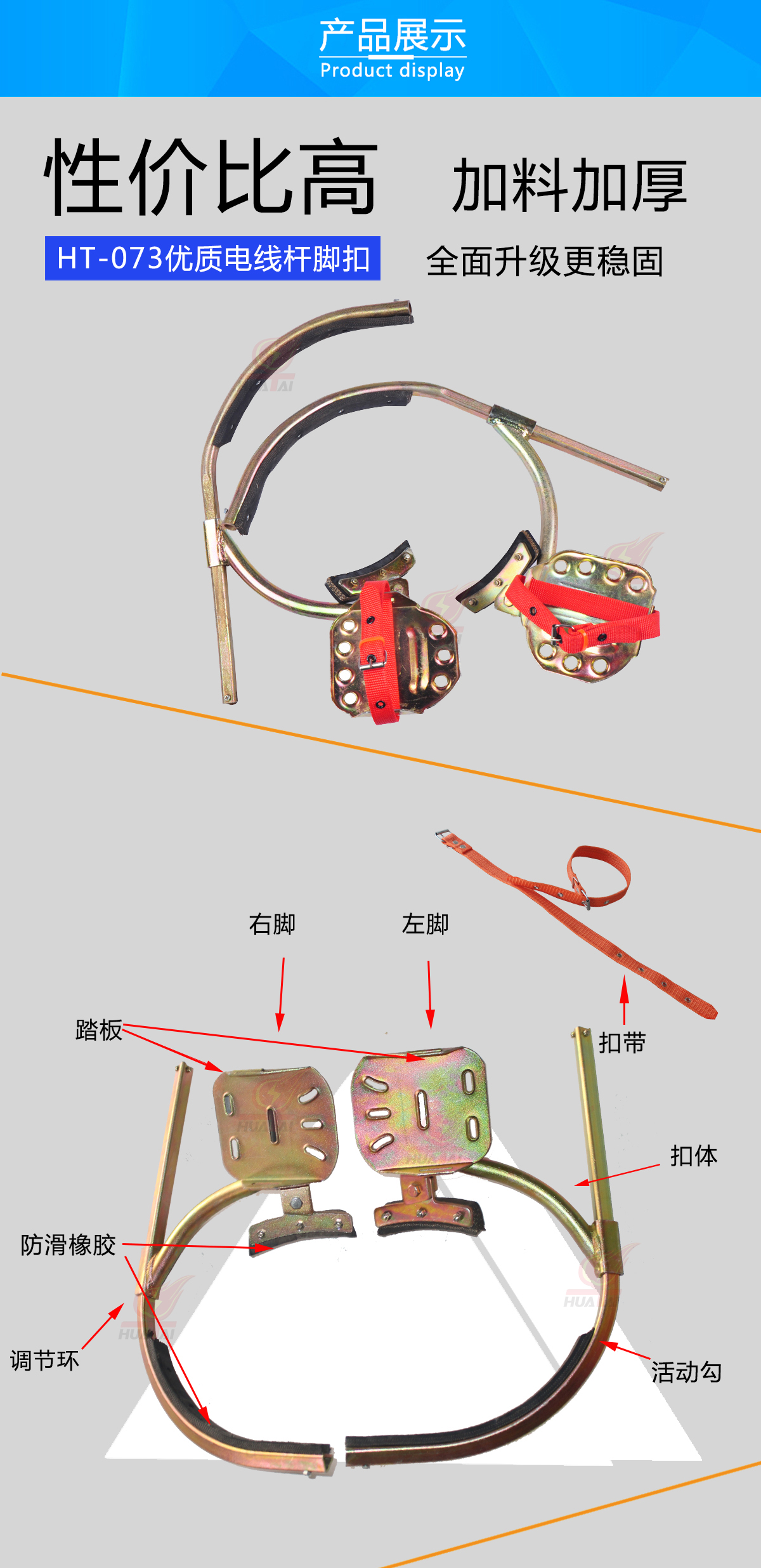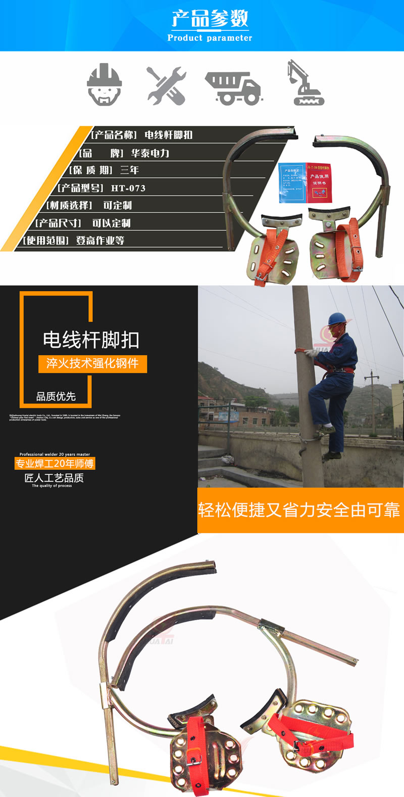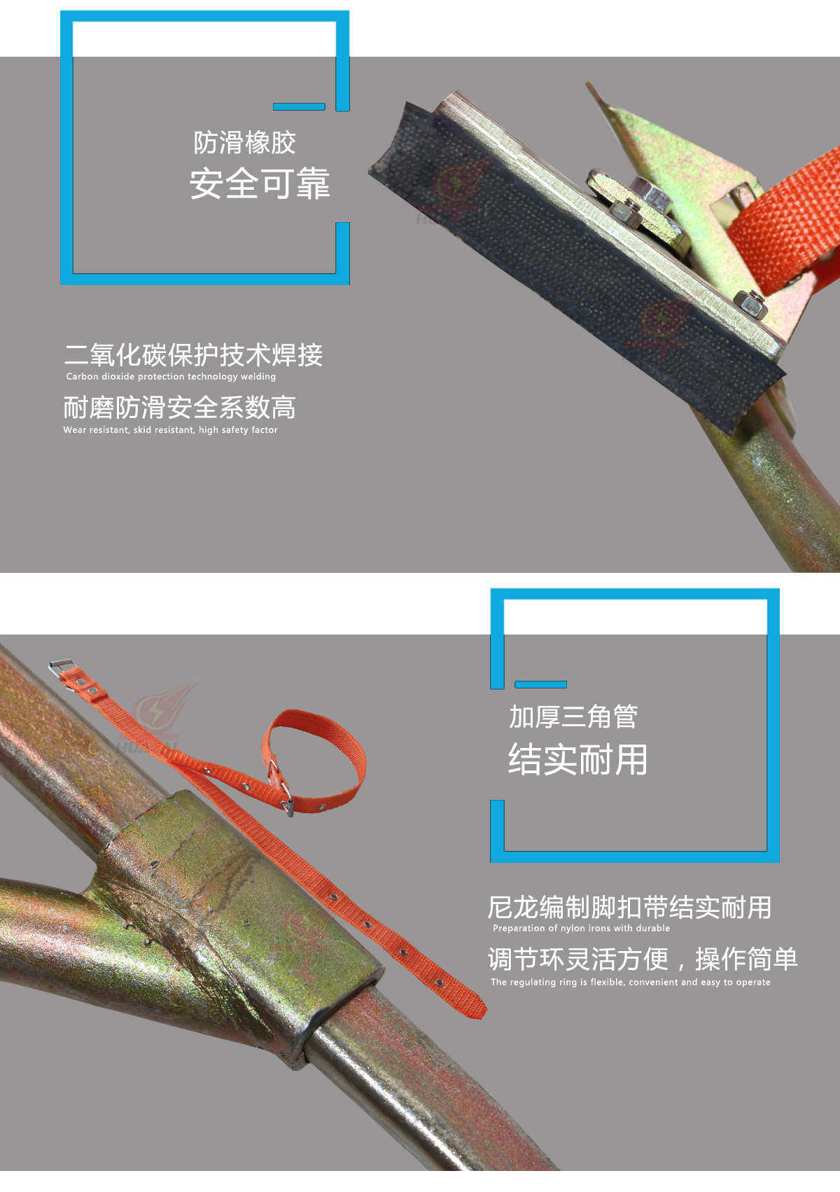 爬電線桿腳扣耐用,是電工爬不同規(guī)格的桿理想工具