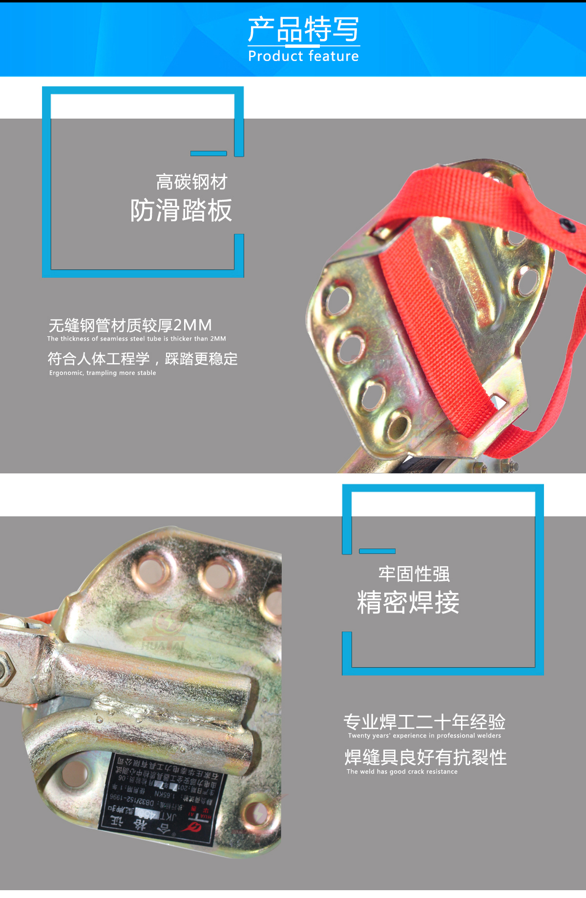 爬電線桿腳扣無縫鋼管:純正無縫鋼管制作,鋼管壁厚不小于2.8mm質(zhì)量穩(wěn)定,堅固耐用
