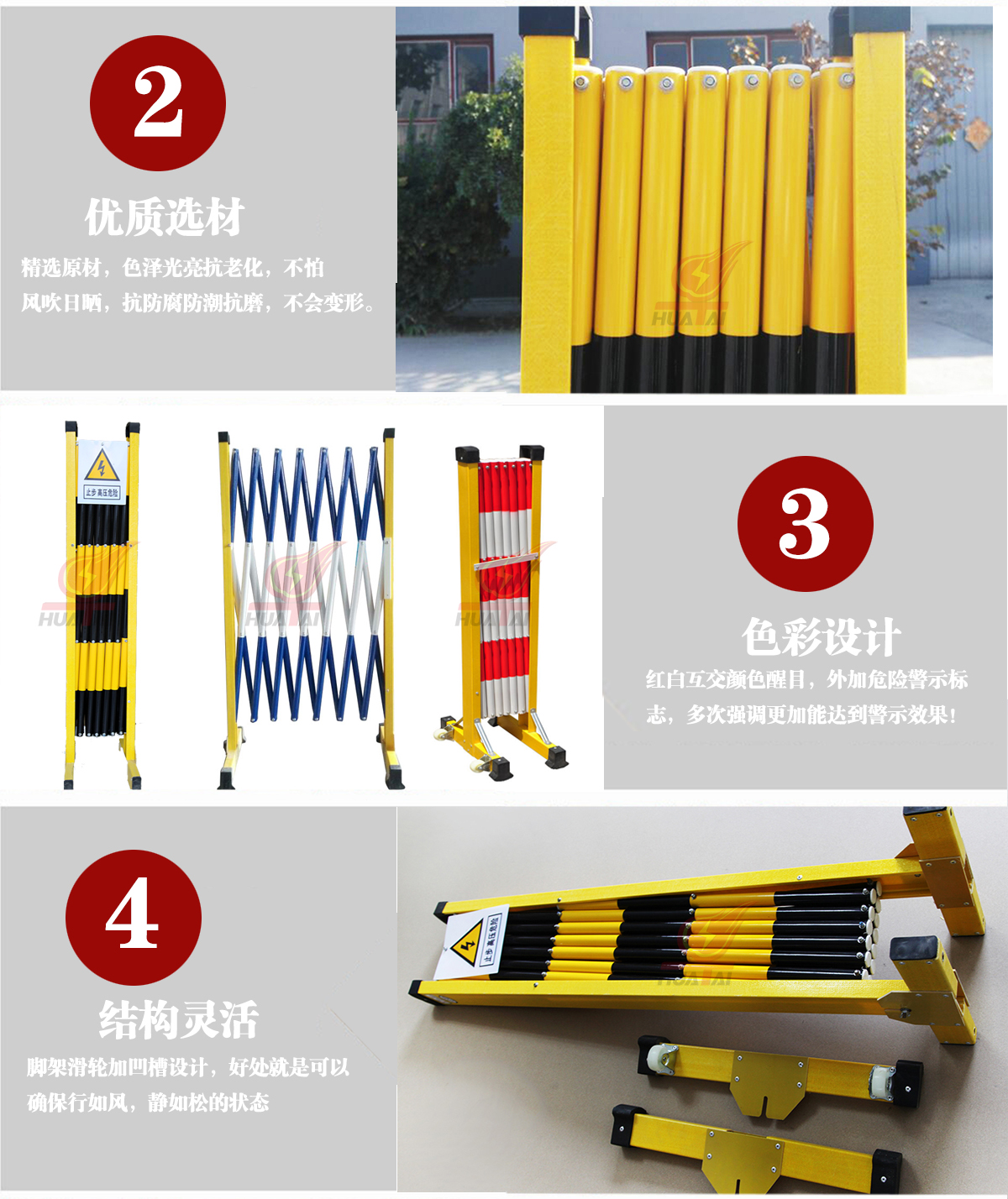 使得絕緣圍欄顏色紅白互交,顏色更加醒目。從而使護(hù)欄的防護(hù)作用體現(xiàn)的更加明顯。