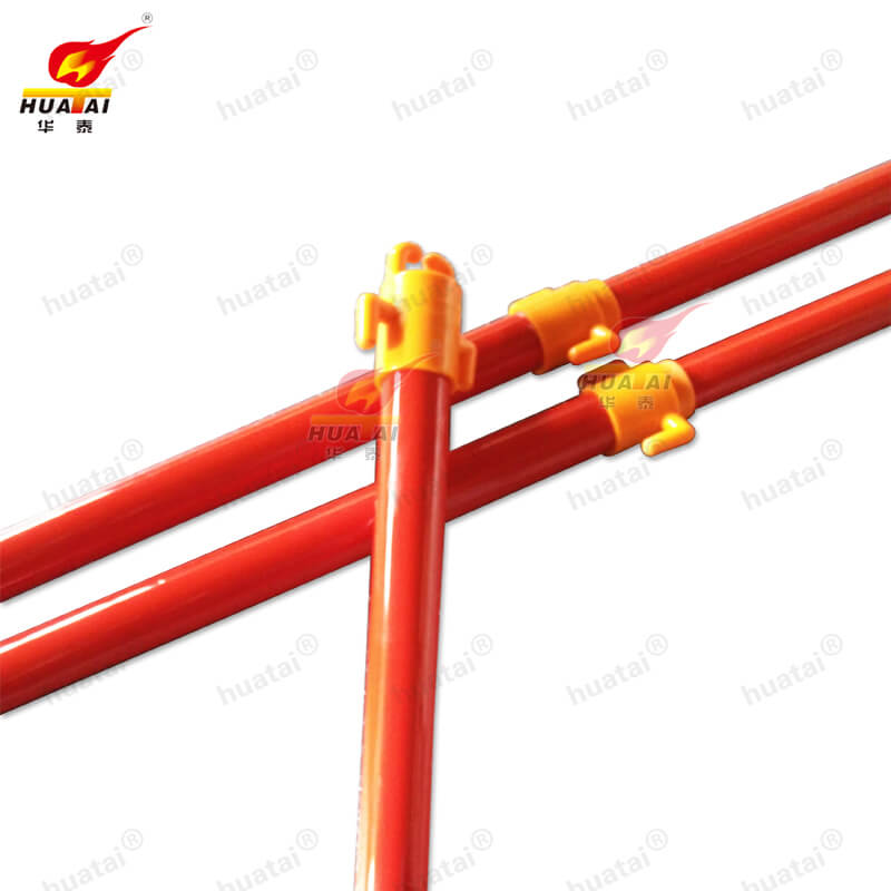 圍欄管使用為三角管外壁,提高材質(zhì)強(qiáng)度,不易變形。 關(guān)節(jié)處帶卡扣,按鍵式,不會(huì)自動(dòng)滑落。 此為新型伸縮絕緣地樁,比以往老款做工